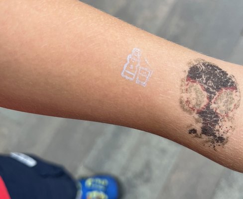 „Bei den hohen Temperaturen ist es sehr wichtig auch viel Wasser zu trinken“, betont Kathrin Herold-Kühne aus dem Leitungsteam der Kita. Dafür hat das Kita-Team Stempel, mit denen sich die Kinder und Pädagog:innen an das Trinken erinnern können. Am Morgen können sie sich die Stempel auf den Arm aufbringen und erinnern sich mit dem Blick darauf mehrmals täglich an das Trinken. Es gibt ganzjährig in den Räumen und im Garten Trinkstationen, an denen Wasser und Tee zur Verfügung stehen.