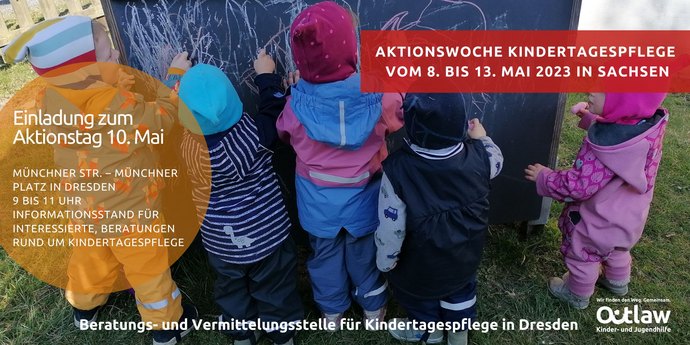 Die sachsenweite Aktionswoche für die Kindertagespflege findet in diesem Jahr statt vom 8. bis 13. Mai 2023. Die Fachberaterinnen der Outlaw-Beratungs- und Vermittlungsstelle für Kindertagespflege in Dresden haben mit ihrer Unterstützung der Kindertagespflegepersonen an den Vorbereitungen für die Aktionswoche Kindertagespflege begonnen. Denn unter dem Motto „Das kleine 5 x 5!“ sind landesweit wieder Tagesmütter, -väter und Interessierte eingeladen, mitzumachen und die Kindertagespflege vorzustellen. Initiiert und begleitet wird die Aktionswoche von der Informations- und Koordinierungsstelle Kindertagespflege in Sachsen (IKS) begleitet. Das Projekt agiert unter Trägerschaft des Paritätischen Sachsen und wird vom Freistaat Sachsen gefördert.