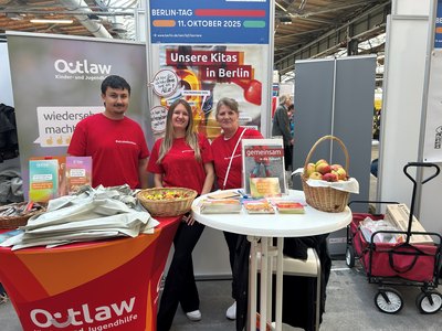 Diese Gelegenheit nutzten wir, um die vielfältige Arbeit unserer Berliner Kitas vorzustellen und mit Interessierten ins Gespräch zu kommen. Mit dabei waren Silvia Seibt, pädagogische Fachkraft unserer Kita Alt-Wittenau und Devrim Bozkurt, Auszubildender unserer Kita Am Maselakepark. Silvia Seibt berichtete von ihren Erfahrungen zum Thema Quereinstieg und gab wertvolle Tipps an Interessierte weiter, während Devrim Bozkurt spannende Einblicke in seine Ausbildung und den pädagogischen Alltag teilte. Klaudia Pacon, verantwortlich für das Personalmarketing und Recruiting in Berlin, koordinierte den Messeauftritt und stand für Fragen zu Einstiegsmöglichkeiten bei Outlaw zur Verfügung.