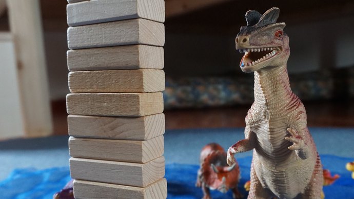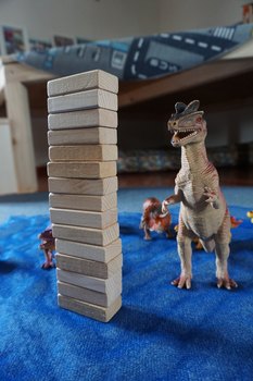 Nachdem die Kinder ihre Ideen gesammelt hatten, konnten sie sich für eines der drei spannenden Themen entscheiden: Dinosaurier, Fahrzeuge auf der Baustelle oder Tiere auf dem Bauernhof. Der spannende Moment kam dann im Morgenkreis. Jedes Kind bekam eine Stimme, für die symbolisch ein Holzbaustein stand. „Alle waren aufgeregt und konnten es kaum abwarten das Ergebnis zu sehen“, erzählt Petra Zachova, Sprachfachkraft in der Kita Hechtstraße. Die Spannung stieg, als der Turm immer höher wuchs und schließlich war klar: Das Thema Dinosaurier hatte die meisten Stimmen erhalten!