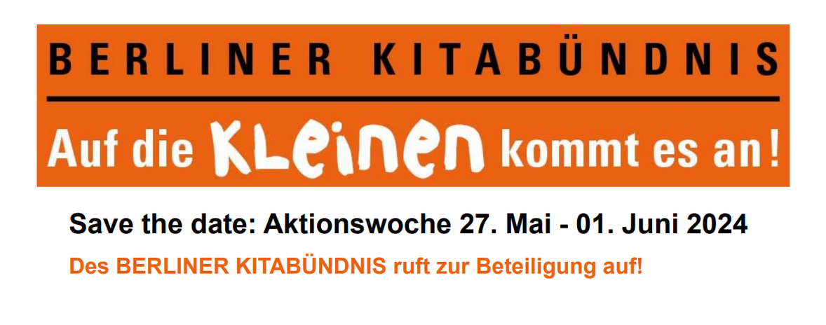 Mehr Informationen zur Aktionswoche des Berliner Kitabündis findet ihr hier: https://www.berliner-kitabuendnis.de/