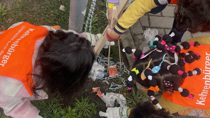Außerdem zogen Kinder und pädagogische Fachkräfte mit Bollerwagen in auffälligen Warnwesten durch den Park, während Nachbar:innen neugierig aus ihren Fenstern schauten. Denn Outlaw hatte für diese Woche eine beeindruckende Müllsammelaktion ins Leben gerufen. Mit großer Motivation und Entschlossenheit setzten sich die Mitarbeiter:innen und Kinder dafür ein, ihre Viertel von Abfall zu befreien. Dabei werden sie durch die Berliner Stadtreinigung (BSR) mit den notwendigen Materialien unterstützt. Ausgestattet mit Handschuhen, Besen, Abfallgreifern und Müllsäcken machen die Kinder mit viel Freude die Umgebungen der Kitas sauber. Neben dem wichtigen Beitrag zur Sauberkeit ist es Ziel, sichtbar zu werden, um die unbestreitbare Bedeutung frühkindlicher Bildung in unserer Gesellschaft zu betonen. Wir wollen klarstellen: „Bildung ist nicht für die Tonne!“.