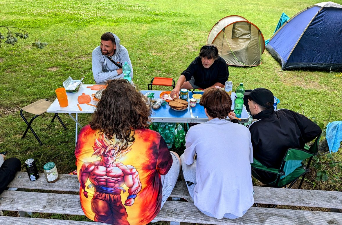 Um Tage voller Spaß zu erleben, brauchte es nicht viel. Beim Volleyballspielen und in Armdrück-Duellen kam der spielerische Wettbewerbsgeist auf. Spätestens beim gemeinsamen Kochen waren die Wettbewerbe jedoch wieder vergessen und die Gruppe wurde wieder zu einem Team. Die Mahlzeiten wurden von den Jugendlichen und den Sozialpädagog:innen aus den vorher besorgten Lebensmitteln zubereitet. Selbstgemachtes schmeckt bekanntlich am besten – und nach all den Aktivitäten war die Vorfreude aufs Essen besonders groß.