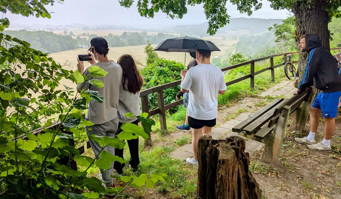 Neben dem Kochen standen auch Schwimmen und Wandern auf dem Programm. Trotz Regen genossen die Jugendlichen den wunderschönen Ausblick nach der Wanderung, ausgestattet mit Kapuzen und Regenschirmen.