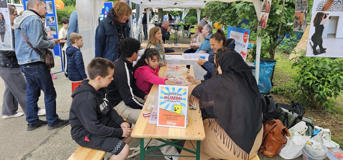 Die Veranstaltung war geprägt von einer herzlichen Atmosphäre der Zusammengehörigkeit und Vielfalt. Verschiedene Stände mit interessanten Aktivitäten und Informationsangeboten, darunter ein Willkommensprogramm, Musik und eine Hüpfburg, machten das Fest zu einem Wochenendhighlight für die Bewohner:innen Merseburgs. An unserem Stand hatten Kinder und Eltern von 10:00 bis 16:00 Uhr die Möglichkeit, Armbänder und Ketten aus einer großen Auswahl an bunten Perlen zu kreieren. Diese Aktivität förderte nicht nur die Kreativität der Kinder, sondern bot auch eine Gelegenheit zur Interaktion und zum Austausch mit den Besucher:innen des Inklusionsfestes.