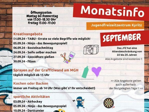 Den Spätsommer begrüßt das 'Jotti', wie das Outlaw-Jugendfreizeitzentrum Kyritz von den Kyritzer Kids genannt wird, mit einem abwechslungsreichem Programm: