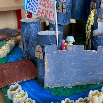 Mit der Zeit wuchs eine ganz eigene kleine bunte, fantasievolle Welt heran, in die sich die Kinder am Ende mit selbst gebastelten Spielfiguren hineinsetzten.