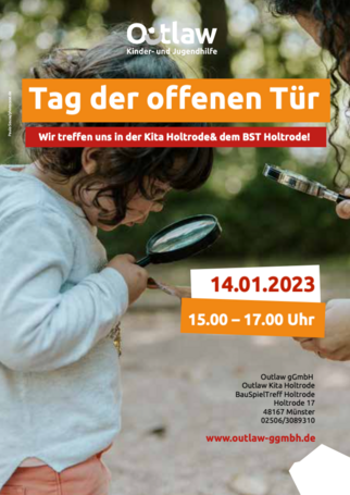 Die Teams der Kita Holtrode sowie des BauSpielTreffs in Münster laden euch am Samstag, den 14. Januar 2023, zum Tag der offenen Tür ein.