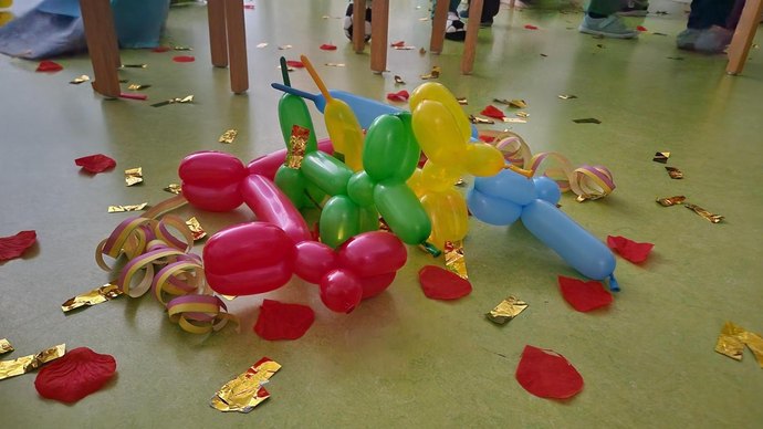 Im Kita-Bereich hatten die Kinder die Möglichkeit, bereits verkleidet anzukommen oder sich vor Ort ein Kostüm auszusuchen. Auf dem Programm standen eine Kinderdisco, das Erstellen von Luftballontieren und Freispiel. Die Räume waren erfüllt von Bewegung, Musik und fantasievollen Rollen.