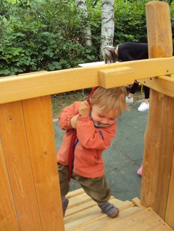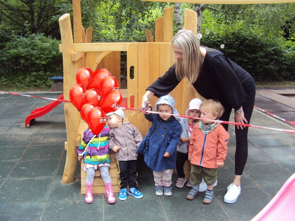 Klettern, kriechen, hangeln, rutschen und die Welt von etwas weiter oben betrachten! Das ist nun seit 2. Juli auch für die Krippenkinder der Leipziger Outlaw-Kita Am Kirschberg möglich. "Im Krippengarten gab es das neue Klettergerüst für die Kinder zu entdecken. Spannend, spannend!" verrät Krippenerzieherin Claudia Schandert. Gemeinsam mit ihr eröffneten die Mädchen und Jungen das neue Spielgerät im Krippengarten. Feierlich durchschnitten sie dafür das befestigte Band. Danach war kein Halten mehr und die Kids eroberten das Spielgerät voller Freude und Energie.