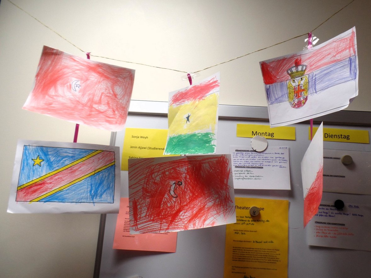 Laut dem gregorianischen Kalender wird in westlichen Kulturen das Neujahr vom 31. Dezember auf den 1. Januar gefeiert. In China und in einigen andere Ländern wird das Neujahr jedoch später begrüßt. Spielerisch und durch Gespräche bereitete das Team die Kinder auf ihr Fest vor. In Kreativ-Angeboten setzten sich die Mädchen und Jungen zum Beispiel mit den unterschiedlichen Flaggen auseinander und stellten einige ihrer Wahl her. Sie gestalteten Glückssymbole wie Hufeisen und Kleeblätter und malten mittels Pustetechnik bunte Silvester-Feuerwerksbilder. Die Eltern unterstützten bei der Sprachenvielfalt und notierten in ihrer Landessprache die allgemeinen Neujahrsgrüße, die Teil der Dekoration wurden.