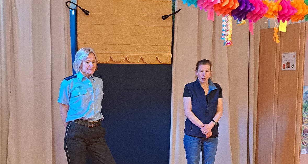 "Alle waren wirklich ganz aufgeregt, denn eine Überraschung wurde von den Erzieher:innen angekündigt. Doch was es sein könnte blieb offen. Die Spannung stieg, Ideen wurden vorgetragen und die Kids waren kaum noch zu halten, als das Polizei-Auto einbog", berichtet Stefanie Haase vom Kita-Leitungsteam. Nachdem die Puppenbühne aufgebaut war, starteten Kriminalhauptmeisterin Claudia Heinemann und Puppenspielerin Kerstin Wilhelm, welche die Vorschüler:innen durch das Programm führten, die Vorstellung. Das Stück rund um das Thema Fahrradsicherheit ist für Vorschüler:innen konzipiert und wurde erst zum zweiten Mal aufgeführt.