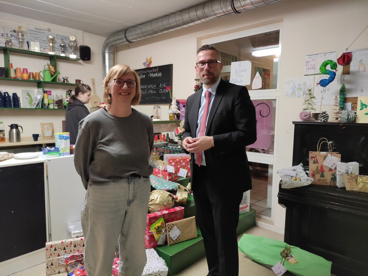 Im Kinder- und Jugendhaus RIEMIX in Riesa an unserem Standort Meißen durften wir gestern einen besonderen Nachmittag erleben:Staatsminister Martin Dulig (SPD) des Sächsischen Staatsministerium für Wirtschaft, Arbeit und Verkehr (SMWA) brachte stellvertretend für seine Kolleg:innen aus dem Ministerium 51 liebevoll verpackte Geschenke mit. Gemeinsam mit einer großen Portion Herzlichkeit und Wertschätzung wurde der Nachmittag zu einem besonderen Erlebnis für die Kinder und Jugendlichen vor Ort.