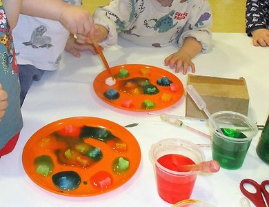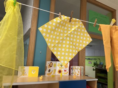 Den ganzen Februar ging es bei den Krippenkindern der Leipziger Outlaw-Kita Nordweg farbenfroh zu. Wöchentlich stand eine neue Farbe im Mittelpunkt: Mit den Farben Grün, Gelb, Blau und Rot wurde sortiert, experimentiert, gestaltet und erkundet. Wer zu Hause passende Kleidung in der Farbe der Woche hatte, war eingeladen sich entsprechend anzuziehen. Bei Spaziergängen suchten die Mädchen und Jungen zum Beispiel nach grünen Objekten. Die kleinen Forscher:innen lernten, dass Grün in der Natur sehr häufig vorkommt, bei Keks-Sorten jedoch weniger. Weshalb also nicht selbst welche backen? Gedacht, getan! Mit Lebensmittelfarbe buken sie also grüne Kekse in der Kita und verspeisten sie mit Genuss. "Täglich begrüßten uns grüne, gelbe, blaue und rote Farbtupfer, sodass der graue Winter durch unsere Krippies ein bisschen bunter wurde", lächelt Christiane Reichert vom Kita-Leitungsteam. Den Höhepunkt zelebrierten die kleinen und großen Regenbogenkünstler:innen am 7. Februar mit ihrem Farbfest, bei dem sie ausgiebig tanzten, feierten und sich farblich "tätowierten". Passenden farbenfrohen Speis und Trank gab es selbstverständlich auch. "Es war ein bisschen wie Fasching – ein anstrengender, aber sehr schöner Tag!", lacht Christiane Reichert.