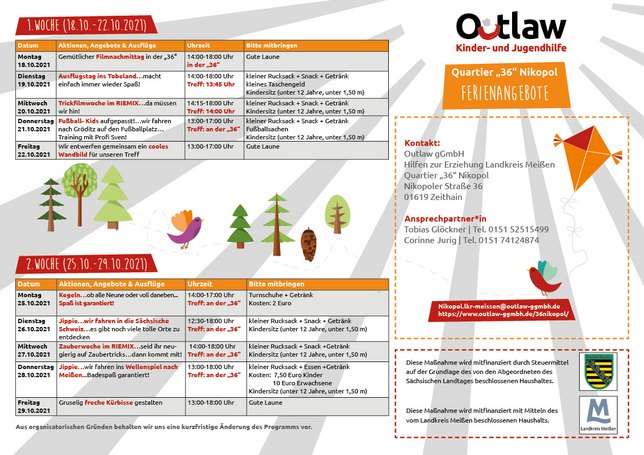 Herbstferien im Quartier "36" Nikopol: Das ist unser Programm vom 18. bis 29.10.21