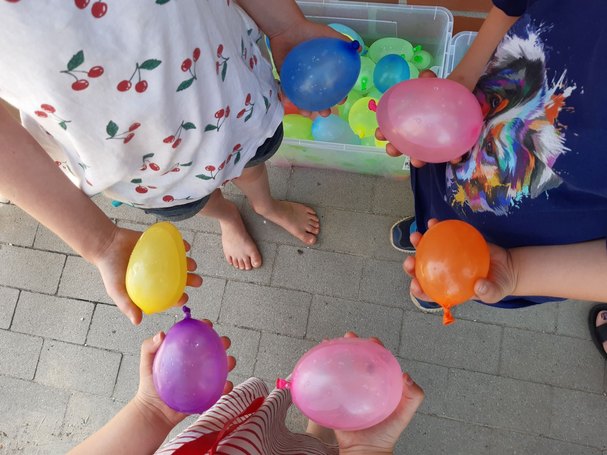 Die Kinder hatten jede Menge Spaß an den verschiedenen Aktionen. Nach einer gemeinsamen Begrüßung mit Gesang und einem offenen Frühstück, konnten sie kreative Sonnencaps basteln, sich schminken, Wasserbomben werfen und vieles mehr.