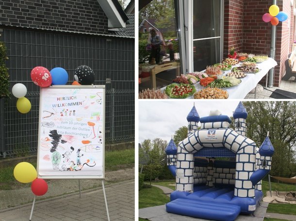 Im Mai feierte unsere Kita Buschlandweg ihr 10-jähriges Jubiläum und lud hierfür zum großen Fest ein. Zahlreiche Kids erschienen mit ihren Familien und saßen bei reichlich leckerem Essen und selbstgebackenen Kuchen gemütlich zusammen. Das Entertainment kam für die Kleinen hierbei jedoch nicht zu kurz: Eine Hüpfburg, eine Bimmelbahn und ein Luftballonkünstler garantierten den Kindern einen hohen Spaßfaktor. An der Bastelstation konnten die Mädchen und Jungen auch noch Cappys bemalen und Armbänder basteln.