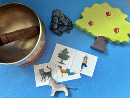 Ob der herabschauende Hund, der Baum oder die Schildkröte – alles kein Problem für die Kids der Kita Rehefelder Straße in Dresden. Spielerisch und mithilfe von Holzfiguren, Karten, Klangschale und Duftsteinen tauchen die Kinder in fantasievolle Yoga-Geschichten ab. Dabei lassen die pädagogischen Fachkräfte aktuelle Themen der Kinder sowie Ideen von yogabegeisterten Praktikant:innen einfließen. Im Mittelpunkt stehen immer die Bewegungsfreude und der achtsame Umgang mit sich und seinem Körper.
