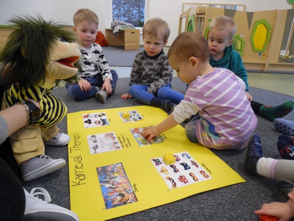 Aber nicht nur Theorie, sondern vor allem Praxis ist wichtig: Das Kinderrecht auf Beteiligung (Partizipation) setzen wir immer wieder in unseren Kinderparlamenten um. Hier wählen die Kids beispielsweise das Karnevalsthema und erleben dadurch „Demokratie zum Anfassen“: mit Bau- oder Muggelsteinen stimmen sie für ihr Lieblingsthema ab. Schon die Kleinsten können erkennen, wo die meisten Steine liegen oder welcher Turm am höchsten ist – und dieser Vorschlag hat dann gewonnen.