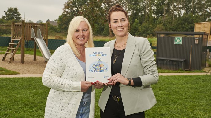 Im Anschluss an die Auszeichnung durften sich Ramona Thünemann, Leiterin der Kita Moosstiege, und Sandra Krümpel, Gesamtleitung Kreis Steinfurt, noch über ein Interview freuen, in denen sie das Thema Klimaschutz im Kita-Alltag noch einmal beleuchten und betonen, was es hierfür bedarf. Das Interview wurde im Rahmen des regionalen Newsletters „Klimabrief Münsterland“ veröffentlicht.