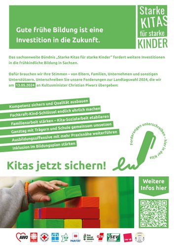 Kitas jetzt sichern! Sachsenweites Bündnis startet Kampagne "Starke Kitas für starke Kinder"