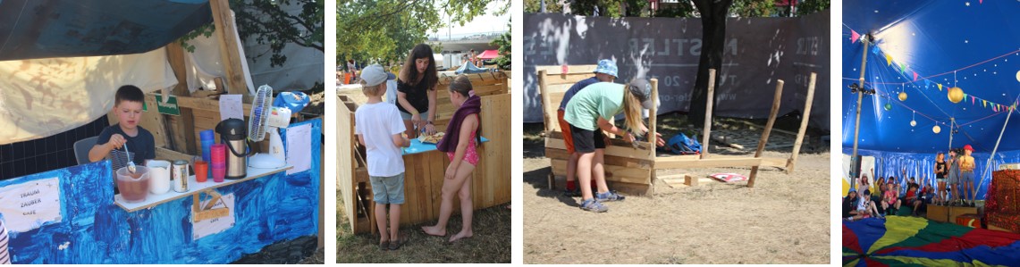 Möglich machten das alles aber auch die 20 KIMAs, die das Kinderbeteiligungsprojekt vom Aufbau, über die Eröffnung, sozialpädagogische Betreuung, handwerkliche Hilfe bis zum Aufräumen und Abbau am Ende unterstützen. „Dieses ehrenamtliche Engagement ist so wichtig für unser Projekt und wir freuen uns über die unermüdliche Hilfe“, dankt Elisa Winkler auch im Namen des Spielmobil-Teams. Ebenso dankt das Team den Paten, die die Teilnahme für Kinder aus benachteiligten Familien möglich machten.