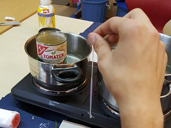 "Der Herstellungsprozess wirkt auf den ersten Blick einfach", sagt Max Röhr, Mitarbeiter des JFZ Kyritz und führt weiter aus: "Aber es braucht eine hohe Konzentration, Ausdauer und Frustrationstoleranz um eine 'formschöne' Kerze zu ziehen. Ziel war es deshalb, über das Kerzenziehen diese genannten Fähigkeiten zu fördern."