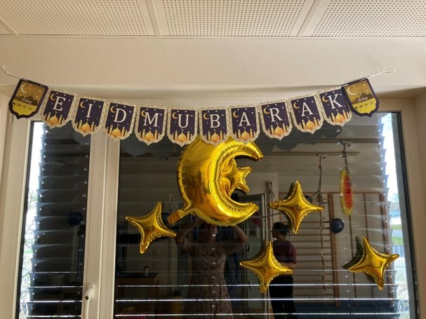 Das Ende des Ramadan (des muslimischen Fastenmonats) feiern gläubige Muslim:innen mit einem dreitägigen Fest, das sich begrifflich als "Zuckerfest" etabliert hat. Seit einigen Jahren feiern die Familien und das Team der Spandauer Outlaw-Kita Am Maselakepark gemeinsam ein kleines Zuckerfest. Dieses Jahr folgten 40 Personen am 4. April der Einladung, um zu diesem Anlass gemeinsam etwa Anderthalb Stunden Zeit zu verbringen, sich auszutauschen und natürlich auch um Leckereien zu schlemmen.