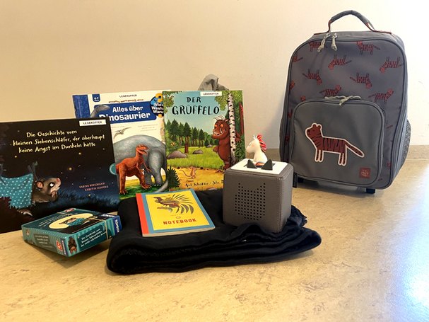 Um Familien Bücher, Spiele und Tonies® niederschwellig und kostenfrei zur Verfügung zu stellen, hat die Outlaw-Erzieherin Simone Sydow Wenck vom Forscherhaus der Outlaw-Kita Alt-Wittenau etwas Besonderes initiiert: Einen Lesekoffer mit mehreren Bilderbüchern, einem Spiel, einer Tonie®Box, einem Tonie® und einer Kuscheldecke.