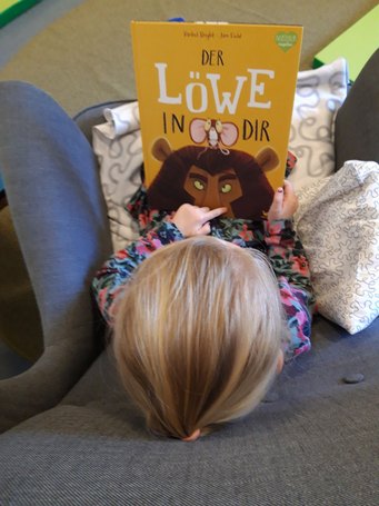 Täglich lasen die Kita-Sozialarbeiter*innen ihnen in Kleingruppen in einem separaten Raum in gemütlicher Atmosphäre mit Matratzen und Decken die Geschichten vor. Die Themen aus den Büchern griffen sie in Gesprächskreisen auf – daraus ergaben sich lebhafte Diskussionen. Besonders das Buch „Der Löwe in dir“, wo es um das Thema Anderssein und Selbstvertrauen geht, hat die Kinder fasziniert.