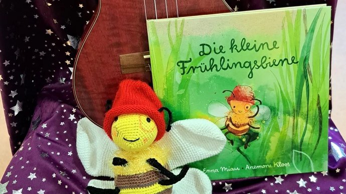 Gemeinsam mit Bienchen Millie lernten die Kinder die Frühjahrsblüher und deren krabbelnde und fliegende Nachbarn kennen. Sie erfuhren Interessantes über Tiere wie Ameisen, Wühlmäuse, Schnecken, Marienkäfer, Blattläuse, Rüsselkäfer oder Schmetterlinge, aber auch Wissenswertes über Schneeglöckchen, Tulpen, Ranunkeln, Krokusse, Margareten und viele mehr. Die liebevoll gehäkelte Biene Millie mit ihrer roten Mütze durfte dabei natürlich nicht fehlen. Dabei erfuhren die Kinder, welche bienenfreundlichen Blumen und Sträucher im kitaeigenen Garten angepflanzt werden dürfen. Das passte auch wunderbar zum aktuellen Thema der Kita: die naturnahe Gestaltung des Außengeländes.