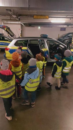 In der Grünauer Kita Am Kirschberg probieren sich die Kinder dank zahlreicher Kooperationen, Aktionen und Projekte regelmäßig aus. So startete in diesem Jahr die „Löwentour“ – eine Aktion verschiedener Angebote, bei der die Kinder erst kürzlich ein Polizeirevier besuchen und Fragen rund um Sirenen, Blaulichter, Fingerabdrücke und vieles mehr stellen konnten. Unter Aufsicht der Polizeibeamt:innen durften die Kinder die Polizeiautos von innen begutachten und sogar das Blaulicht aktivieren – aufregend!