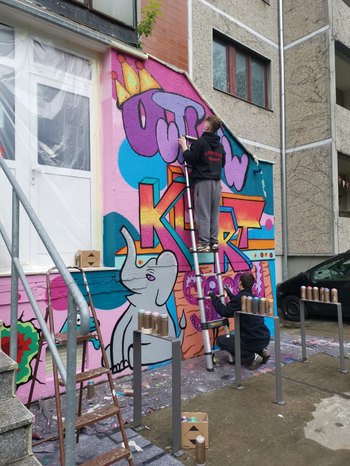 Mehr bunt statt grau: Graffiti- und Rapworkshop für Jugendliche der HzE Rannische Straße