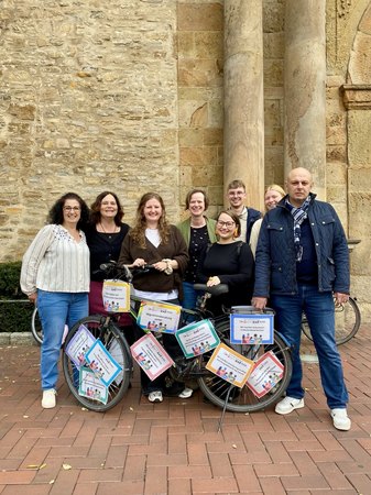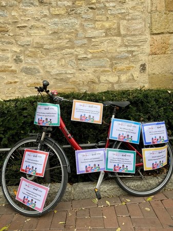 Vier Tage lang verwandeln wir gemeinsam zentrale Orte in der Osnabrücker Innenstadt in eine ungewöhnliche Ausstellungsfläche. Fahrräder werden zu Blickfängen und Erzählflächen – ausgestattet mit laminierten Schildern, die Einblicke in unsere Arbeit geben.