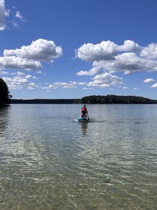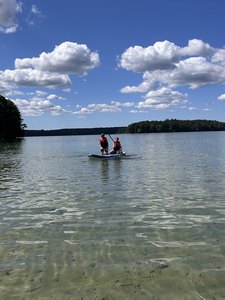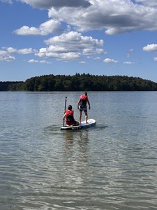 Mitte August kamen die Sportfans auf ihre Kosten: Stand Up-Paddling auf dem Stechlin See ist seit Jahren ein beliebter Programmpunkt! Mit insgesamt acht Kindern im Alter von 10 bis 14 Jahren fuhren Pauline Peglau, Manina Vortanz und Michael Herbst zum bevorzugten Ort am See. "Der Stechlin See ist einer der klarsten Seen in Brandenburg und 70 Meter tief. Wenn man auf dem Stand Up Board steht, kann man sehr weit nach unten blicken und die heimischen Fische im See beobachten", erzählt Pauline Peglau. Auch diesmal war das Wasser "herrlich erfrischend und glasklar" – für manche Kinder zu glasklar, denn viele Fische gab es zu erblicken und ein Kind war deshalb besonders in Sorge: "Pauline, ich habe meine Schwimmschuhe vergessen… was ist denn, wenn mir jetzt an meinem Zeh geknabbert wird?" Die Bedenken waren schnell ausgeräumt und es wurde fröhlich gepaddelt, gekentert, gesprungen und im kühlen Nass geplanscht. Zwischendurch stärkten sie sich mit Essen und Getränken. Nach aufregenden sieben Stunden ging es zurück und auch hier fielen die Kinder glücklich während der Rückfahrt in den Schlaf.