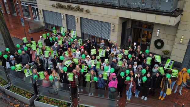 Darüber hinaus wurden auch die Defizite der aktuellen Situation aufgezeigt und erneut auf die Notlage der Sozialen Berufe aufmerksam gemacht. Mit einem Gruppenfoto, Plakaten, Luftballons und ganz viel Engagement unterstützen alle Mitarbeiter:innen am Standort Kreis Steinfurt die Kampagne „NRW bleib sozial!“, riefen erneut zur Unterstützung auf und thematisierten die Notlage, in der sich viele Träger aktuell befinden.