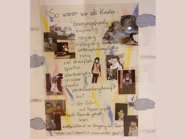 Deshalb erarbeitete das Kita-Team am ersten Tag eine Vision für das Haus: Anhand von Kindheitserinnerungen wurden Postkarten ausgesucht, die widerspiegelten, wie die pädagogischen Kräfte als Kinder waren und wo sie besonders gerne gespielt haben. Auf dieser Grundlage wurde ein Raumkonzept für das Haus abgeleitet.