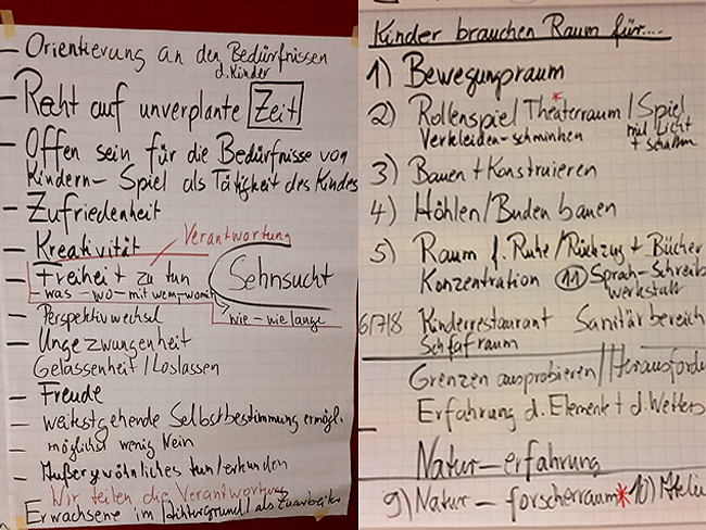 Ein solches Modell verlangt Umdenken und Mut der pädagogischen Kräfte, die alten Muster zu brechen und sich auf Neues einzulassen. Deshalb fanden im Mai 2017 unter der Leitung der Diplompädagogin Christel van Dieken die Teamtage der Berliner Outlaw-Kita Wundstraße zum Thema "Offene Arbeit" statt.
