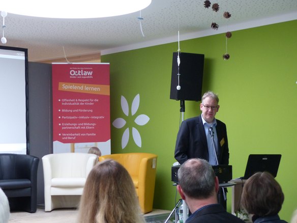 Outlaw-Geschäftsführer Dr. Friedhelm Höfener eröffnete den Fachtag und betonte, wie wesentlich Kita-Sozialarbeit für die Entwicklung von Kitas ist: "Unser Ziel ist deshalb, die unterschiedlichen Ansätze zur Kita-Sozialarbeit an den bundesweiten Outlaw-Standorten zu koordinieren und zu bündeln, um dann ein einheitliches Konzept zu entwickeln."