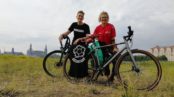 Mit Fahrradfahren Spenden sammeln und junge Frauen unterstützen: Das haben sich zwei Pädagoginnen der Outlaw Kinder- und Jugendhilfe in Dresden für diesen Sommer vorgenommen und wollen mehr als 700 Kilometer Radstrecke dafür zurücklegen. Die beiden Sozialpädagoginnen unterstützen und begleiten in der Mädchen-Wohngruppe Ermelstraße acht Mädchen und junge Frauen im Alter zwischen 14 und 21 Jahren - und genau für diese tollen Mädchen treten Denise Höhlig und Rita Rubzew in die Pedale.