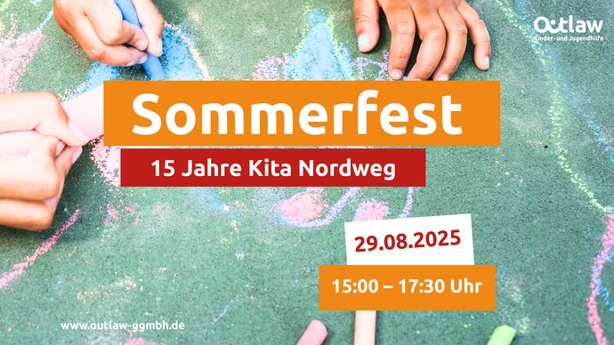 Unsere Kita Nordweg am Standort Leipzig lädt herzlich zum Sommerfest und 15 jährigen Jubiläum ein. Ein Anlass, den wir gemeinsam mit Kindern, Familien und Besucher:innen besonders fröhlich gestalten möchten. Am Nachmittag des 29. Augusts erwarten euch Musik, Spiel und Leckereien.