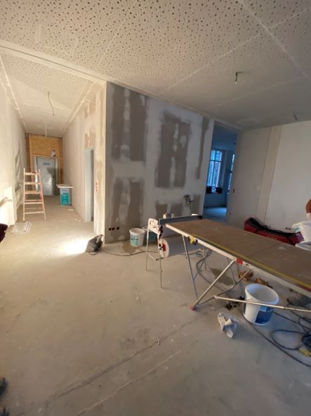 Der Umbau läuft trotz Corona und Materialknappheit nach Plan, das Team ist komplett und steht in den Startlöchern – am 1. Oktober öffnet die Außenstelle der Kita Feuerbachstraße in der ehemaligen Sparkasse im Baßfeld 11-13 in Telgte. Eine Gruppe mit zehn Kindern zwischen null und zwei Jahren findet in den großzügigen Räumen mit einem geschützten Außengelände auf dem Innenhof Platz.