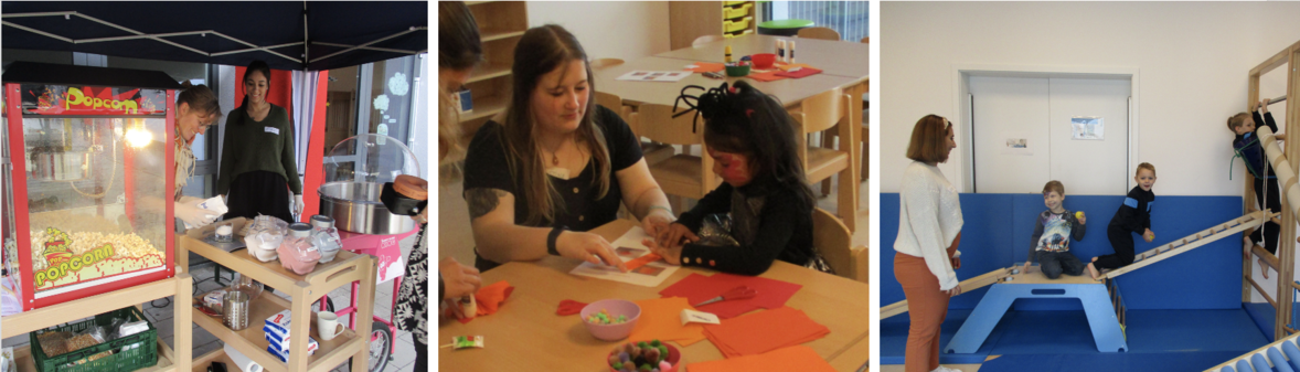 Neben Hausführungen und der Präsentation eines kurzen Films, der einen Einblick in den Alltag der Kita gab, kam auch für die Kinder das Entertainment nicht zu kurz: Von Kinderschminken über Parcours bis hin zu Glücksrad – die Mädchen und Jungen konnten sich ordentlich austoben. „Es war ein gelungener Tag mit buntem Programm. Das Wetter hat auch mitgespielt, sodass wir drinnen und draußen Aktionen anbieten konnten“, erzählt Nicole Salamon. „Wir hatten zudem die Möglichkeit, unsere Kooperationspartner:innen persönlich kennenzulernen, aber auch viele neue Kontakte zu knüpfen.“