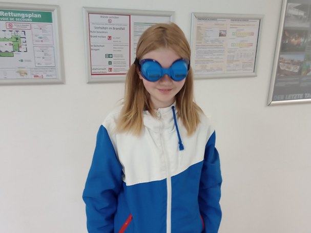 Ein Experiment, das Geschichte hat. Bereits Leonardo da Vinci erkannte vor etwa 500 Jahren, dass die Bilder, die durch unsere Augenlinse auf unsere Netzhaut fallen, um 180 Grad gespiegelt sind. Unserem Gehirn gelingt es, die Bilder umzudrehen, sodass wir die Welt um uns herum aufrecht sehen. Um herauszufinden wie Sehen funktioniert, experimentierte der us-amerikanische Psychologe George Stratton 1896 zum ersten Mal mit Umkehrprismen. "Dieses Prinzip macht sich die Umkehrbrille zunutze und sorgte neben dem eigentlichen Experiment, auch dafür, dass enorm viel gelacht und der Flur "überflutet" wurde", erinnert sich Pauline Peglau lächelnd und führt weiter aus: "Nach nicht all zu langer Zeit musste aber wieder Schluss sein, denn bei längerem Gebrauch verursacht diese Brille Kopfschmerzen, Schwindel und Übelkeit." Diese Nebenerscheinungen veranlassten die Mädchen zu folgender These: "Pauline? Fühlen sich so die Erwachsenen bei Geburtstagen?"