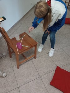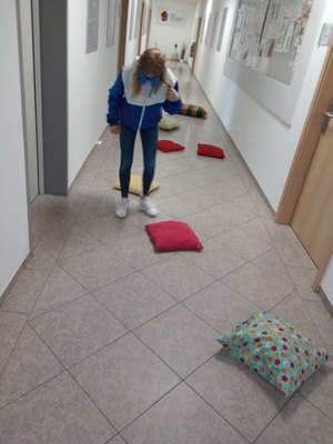 Einer ganz besonderen Herausforderung stellten sich spontan am 14. April zwei Mädchen in Begleitung von Pauline Peglau, Outlaw-Mitarbeiterin des Jugendfreizeitzentrums Kyritz, das auch "Jotti" genannt wird. Mit einer Umkehrbrille forderten sie sich heraus, einen Parcours im Flur des Mehrgenerationenhauses zu bezwingen – eine wahre UpSideDown-Challenge, denn mit einer Umkehrbrille steht alles auf dem Kopf! Dafür mussten die Dreizehn- und die Zwölfjährige über Kissen steigen, eine bestimmte Seite in einem Kochbuch heraussuchen, Trinkhalme in die Becher stecken und einen Becher mit Wasser befüllen. "Das, was sonst ganz einfach ist, wird dann zur großen Herausforderung. Die beiden Mädchen bewiesen dabei eine gute Konzentration, agierten sehr ehrgeizig und wollten unbedingt das Ziel erreichen", erzählt Pauline Peglau und sagt weiter: "Kleine Experimente trainieren unsere kognitiven und motorischen Fähigkeiten."