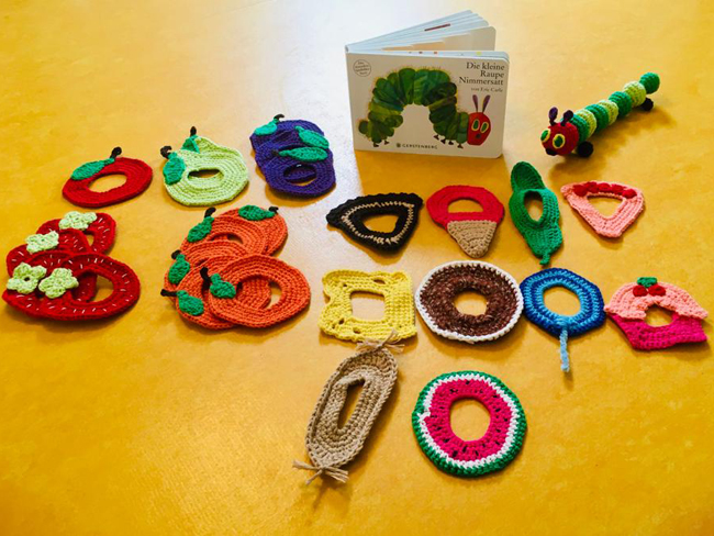 Diese zauberhaften Kunstwerke hat eine Kita-Mutter für die Kita gehäkelt.