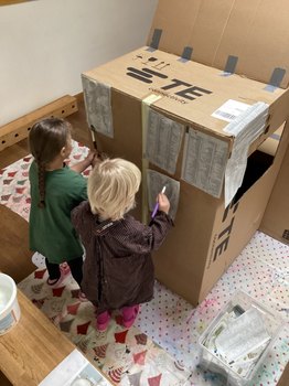 Zum Abschluss wurde der Laden liebevoll mit Lichterketten, Schildern und neuem Spielmaterial wie einer Kasse, Obst, Gemüse und anderen Lebensmitteln dekoriert. Am 4. Dezember eröffneten sie feierlich und stolz ihren Einkaufsladen, der seitdem täglich mit großer Freude bespielt wird. "Wir sind alle noch sehr beeindruckt davon, wie konzentriert und geduldig die Kinder über diesen langen Zeitraum hinweg gearbeitet haben und wie viele wertvolle Gespräche sich während des Projekts ergeben haben", zieht Alina Nessel zufrieden ein positives Fazit und verrät lächelnd: "Doch mit der Eröffnung war die Kreativität der Kinder noch mehr entfacht. Sie sagten 'Manche Lebensmittel müssen doch in den Kühlschrank!' Also entstand kurzerhand ein selbst gebauter kleiner Kühlschrank, der nun ebenfalls zum Inventar des Ladens gehört. Ich bin gespannt, ob sie noch auf weitere Ideen kommen."