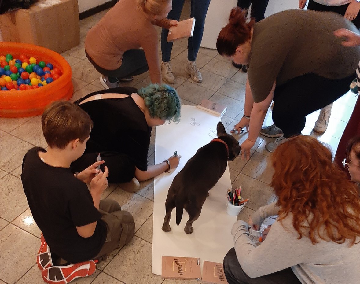 Was dabei möglich ist, wollten die Dresdner Kolleg:innen den Kindern und Jugendlichen der HzE-Einrichtungen aufzeigen. Und damit auch die Teilnehmer:innen wissen, worum es geht, bereiteten Steffi Ulbricht und Grit Kern verschiedene Kennenlern- und Verständnisspiele vor – auch um das Selbstvertrauen sowie das Miteinander der Kinder und Jugendlichen zu stärken. Dank „Lilo“ – Grit Kerns Hund – waren auch schnell alle anfänglichen Unsicherheiten verflogen. Pizza, Limo und eine lockere Atmosphäre sorgten zusätzlich dafür, dass die Kinder und Jugendlichen schnell und ohne Moderation ins Gespräch kamen und sich zu vielfältigen Themen ihrer Lebenswelt austauschten. Schnell wurden auch Telefonnummern ausgetauscht und Verabredung getroffen.