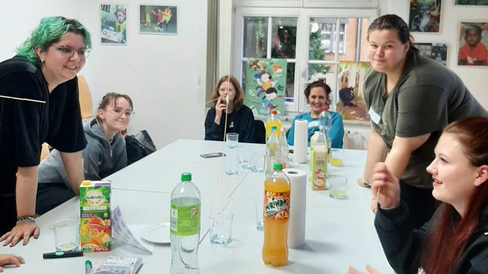 Zum Abschluss des ersten Treffens war dann noch einmal Fingerspitzengefühl gefragt: Im Rahmen einer Gruppenaktion versuchten die Teilnehmer:innen jeweils den höchsten Turm aus Spaghetti zu bauen – das gelang nur zusammen im Team und stärkte das jeweilige Team. "Das war ein wirklich gelungener Auftakt, bei dem alle zu Wort kamen. Selbst die beiden Jüngsten aus der WG Geschwisterwohnen wurden befragt und gehört. Es tat einfach nur gut zu sehen, welche tollen Kinder und Jugendlichen bei uns wohnen", zieht Steffi Ulbricht ein positives Fazit.