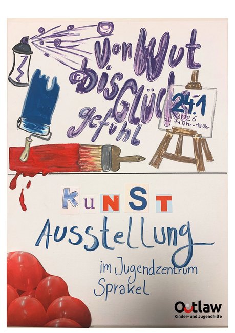 Am 24.01.2026 von 14 bis 18 Uhr lädt das Jugendzentrum Sprakel herzlich zur Kunstausstellung „Von Wut bis Glücksgefühl – Unseren Emotionen mit Kreativität auf der Spur“ ein. Die Ausstellung ist im Rahmen eines Praxisprojekts von Wiebke Schäfer entstanden und zeigt Werke von jungen Besucher:innen des Offenen Treffs sowie der DIY-AG, die in Kooperation mit der OGS Sprakel stattfindet.